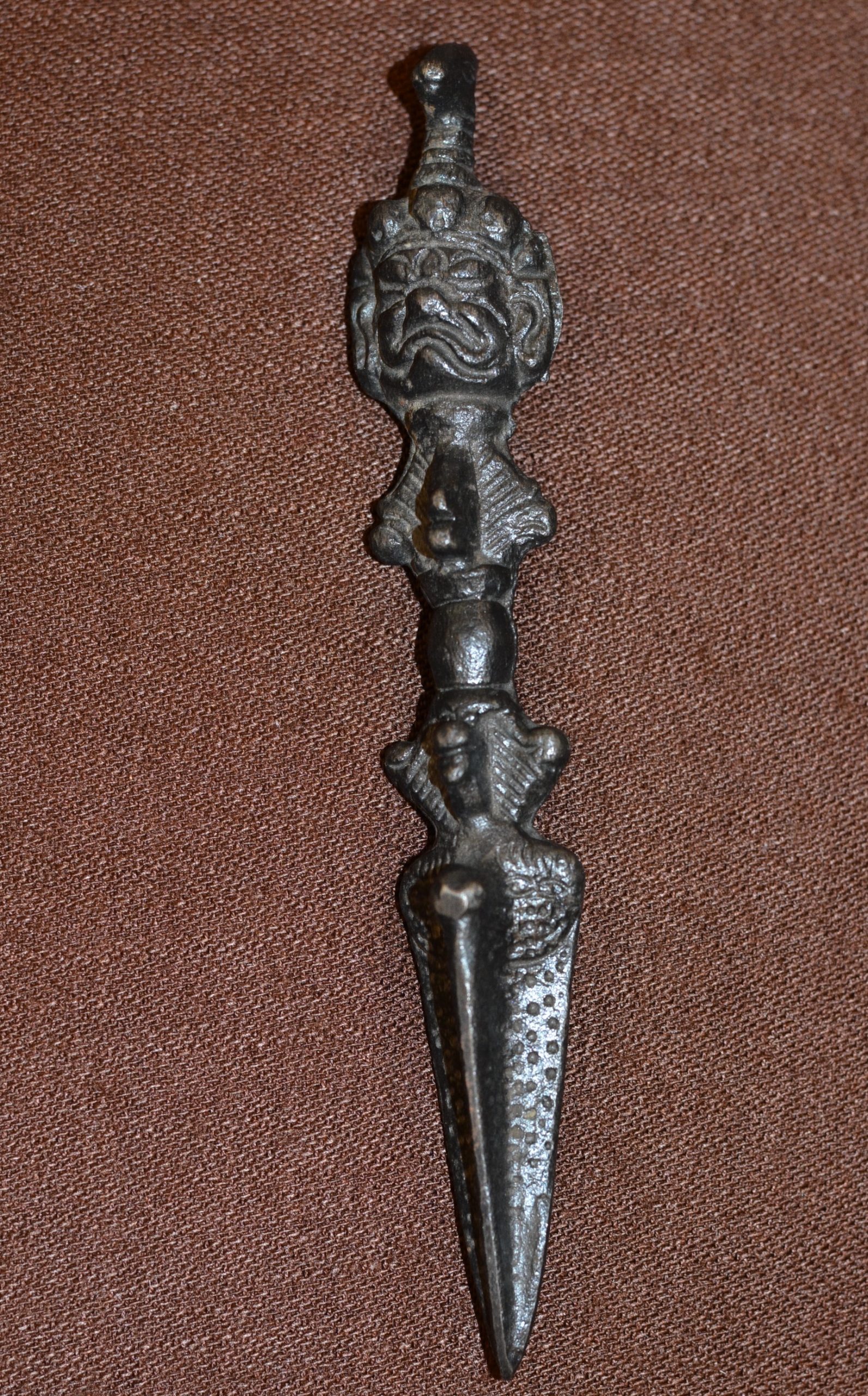 Пхурба – ритуальный трехгранный кинжал. Сакральный инструмент для духовных ритуалов, в особенности для чисток, устранения негатива, защиты от темных энергий.