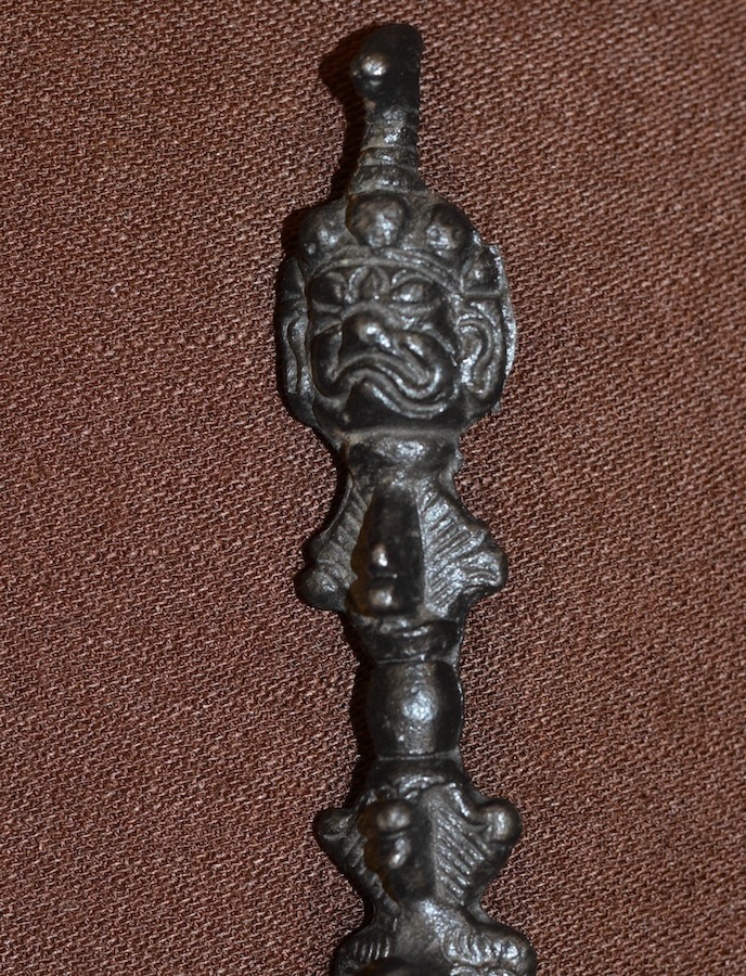 - Нижняя часть – трехгранное лезвие. Три грани символизируют три мира, которые собираются в единое. Три грани также символизируют: трансформацию невежества, устранение гнева и пагубных привязанностей.