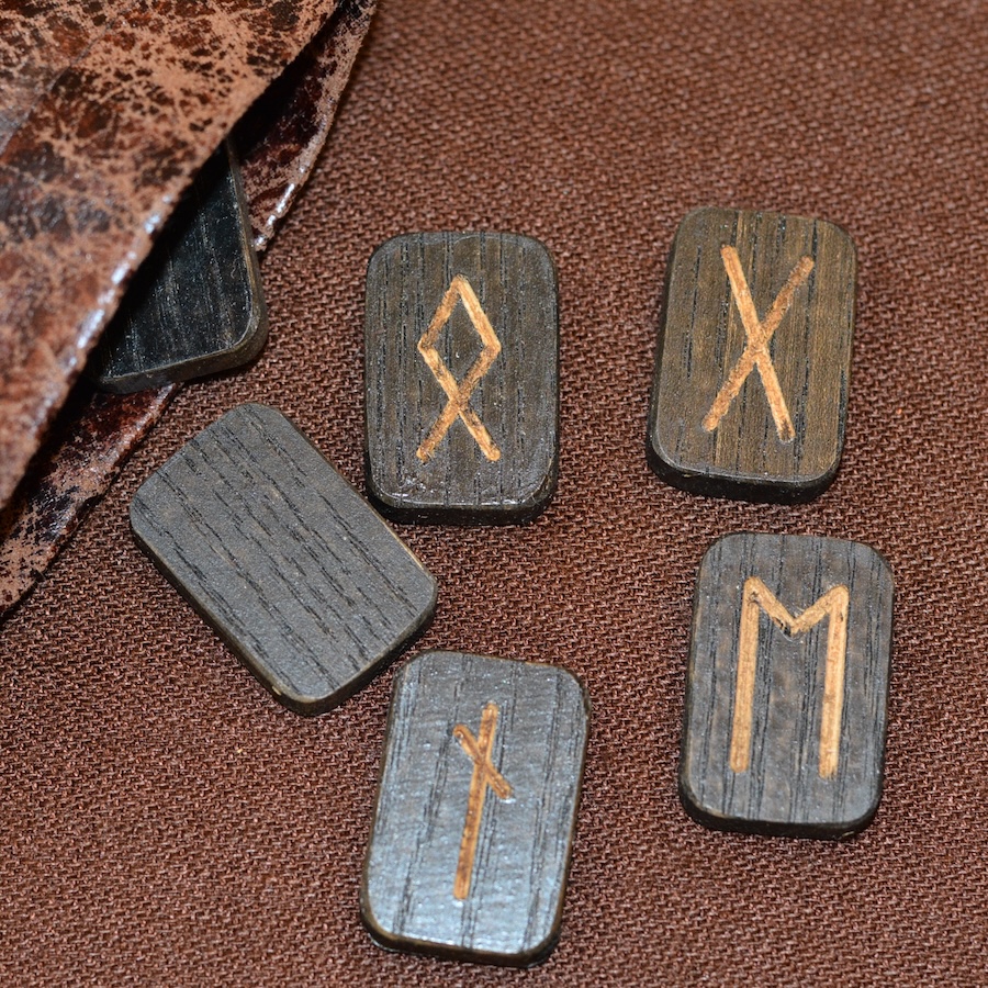 Набор деревянных рун. Ясень. Размер руны 2*3 см. Цвет темный. В наборе 25 рун.