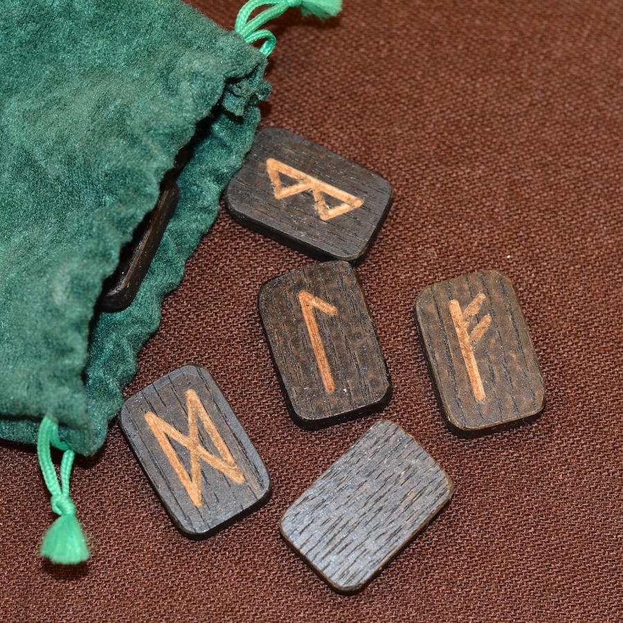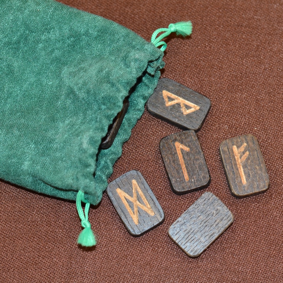 Набор деревянных рун. Ясень. Размер руны 2*3 см. Цвет темный. В наборе 25 рун.
