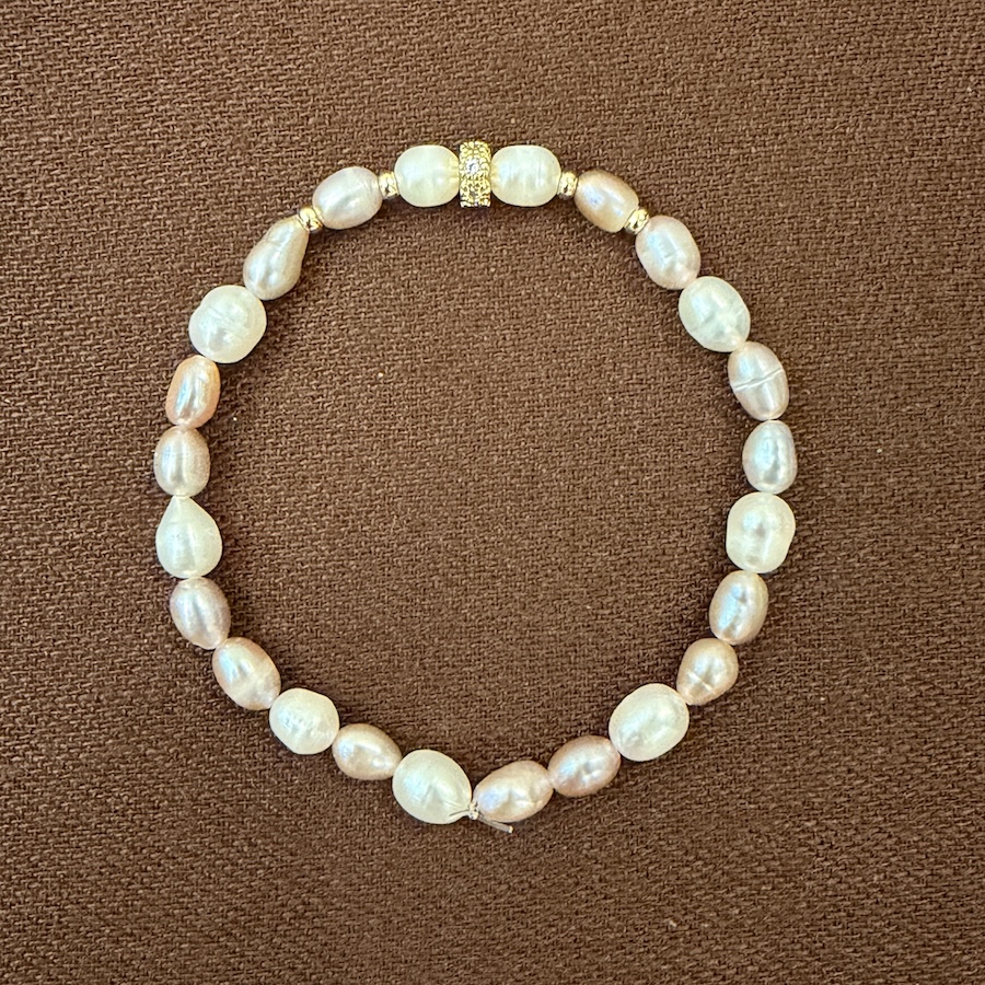 Браслет: лавандовый и белый жемчуг и вставка с фианитами (не темнеет, очень хорошего качества)